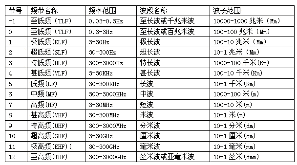 目前,根椐《中華人民共和國(guó)無(wú)線(xiàn)電頻率劃分規(guī)定》,我國(guó)已對(duì)9K~1000GHz頻帶內(nèi)的無(wú)線(xiàn)電業(yè)務(wù)做出了規(guī)劃,對(duì)無(wú)線(xiàn)電頻帶和波段也做了命名(見(jiàn)表1)。